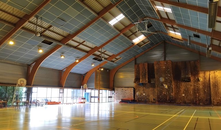 Projet - Réhabilitation thermique du gymnase - Refonte des équipements techniques - Renforcement structure bois - Remplacement de la couverture / murs rideaux - Nouveau mur d'escalade - Remplacement sols sportifs - Réaménagements internes - Mise aux normes Accessibilité Intérieur / Extérieur